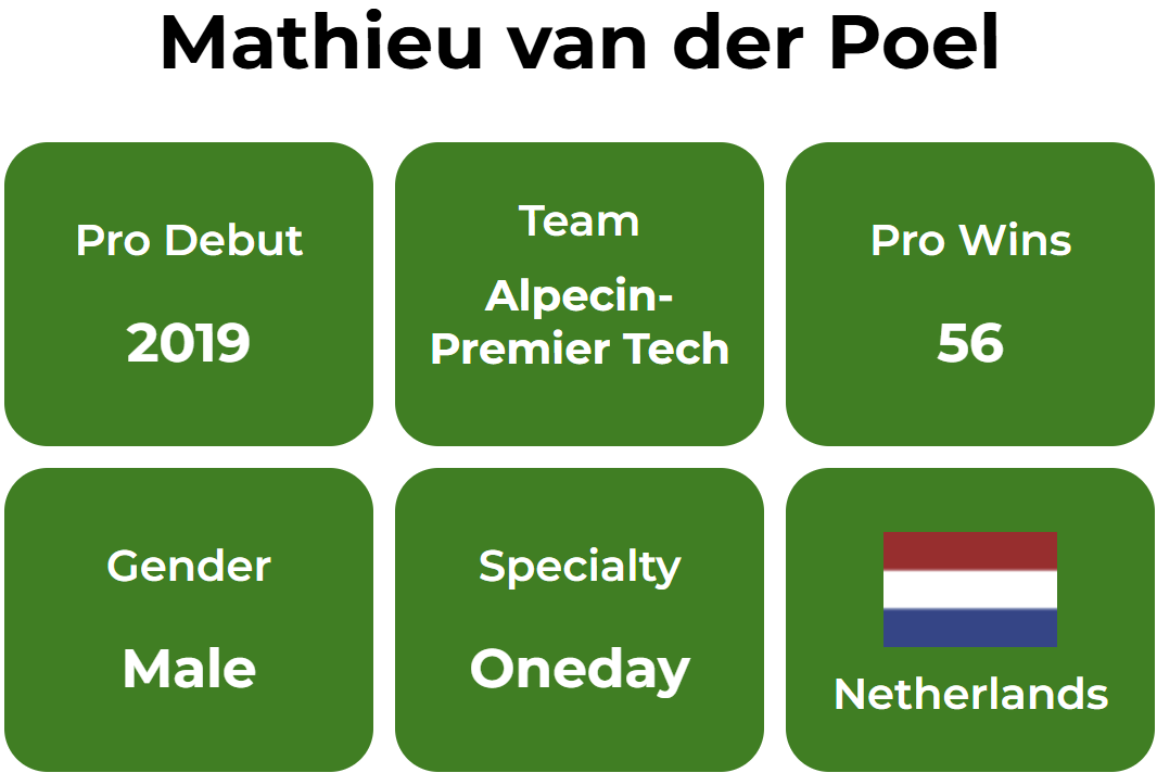 ● Every cyclist from the following mens UCI ProTeams: Tudor Pro Cycling, Cofidis, Pinarello Q36.5 Pro Cycling, and Unibet Rose Rockets.